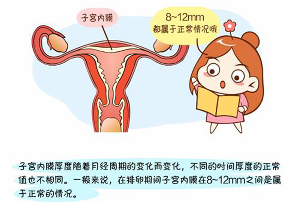 临床上一般认为8-12mm的内膜厚度是最适合受孕的。而始终小于 7mm 的子宫内膜就是子宫内膜薄,受孕几率也会大打折扣!正常情况下,子宫内膜的厚度可以通过阴道B超探测到。在阴道B超显示下,子宫腔前后壁内膜与子宫肌层交界处强回声之间的距离即为子宫内膜的厚度。